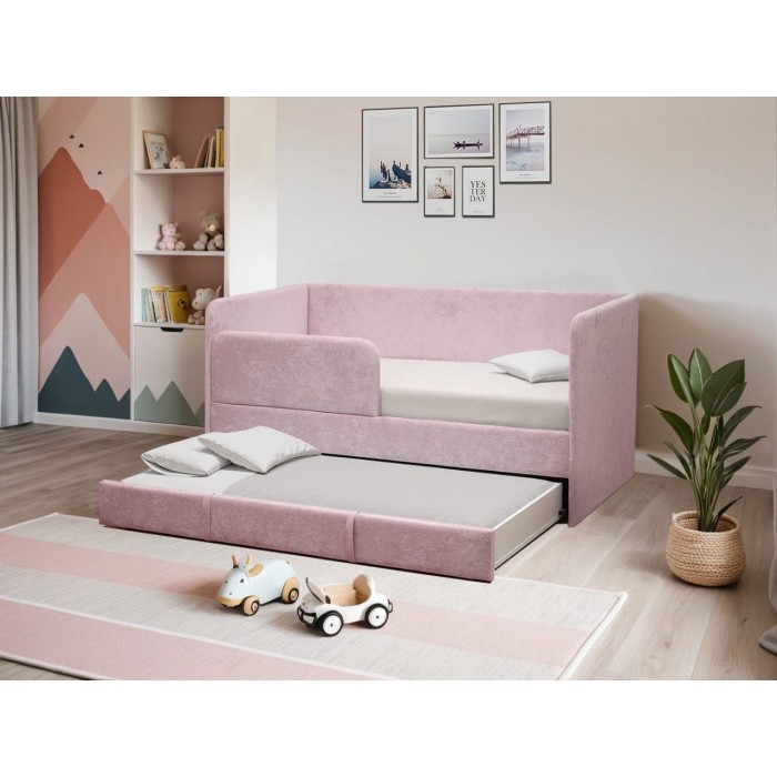 Диван-кровать оснащен ортопедическим основанием из березовых ламелей, которые обеспечивают правильное положение тела во время сна. Мягкий поролон и премиальная обивка из велюра RICH создают приятные тактильные ощущения и дарят непревзойденный комфорт. Для безопасности ребенка предусмотрен надежный бортик размером 820х310 мм.